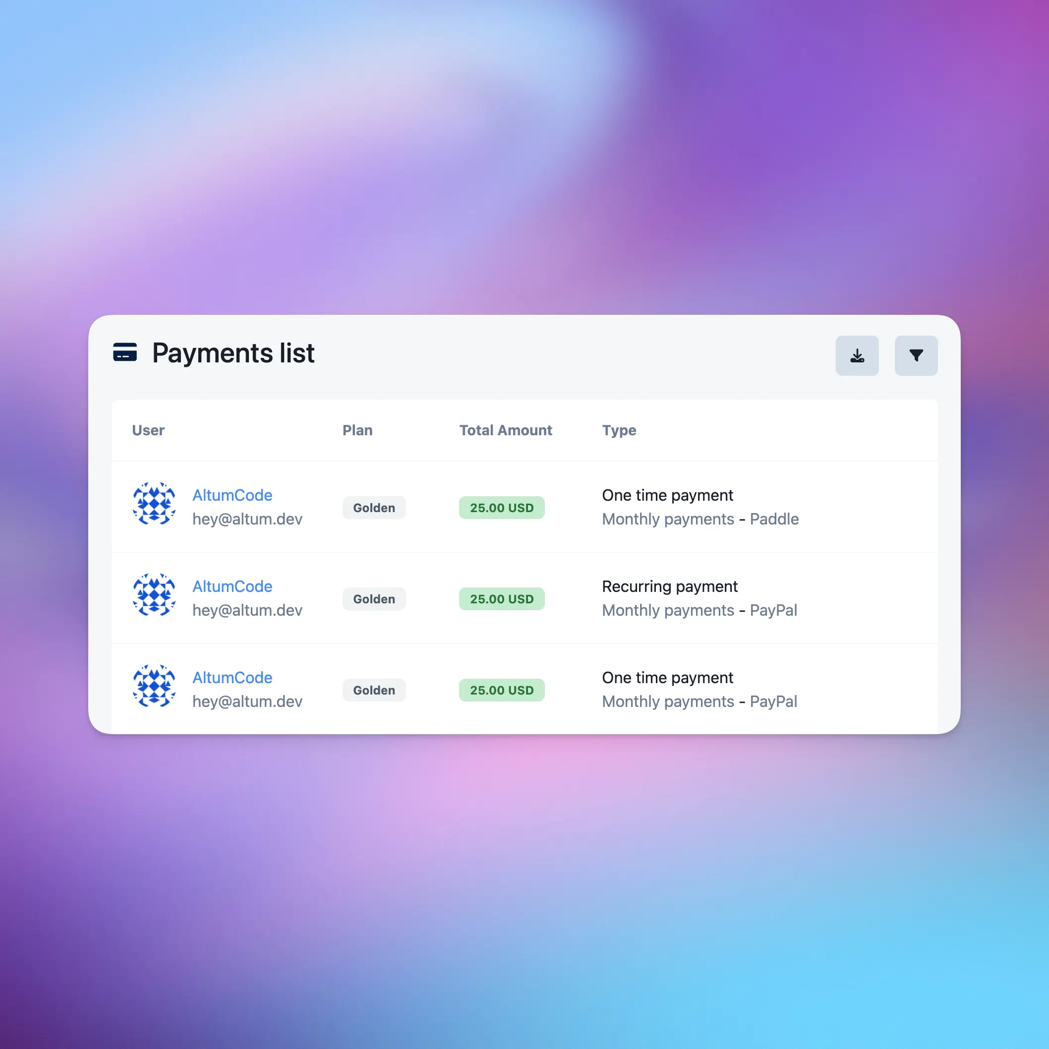 Completely featured and feature-rich system of payments that allows you to start a new SAAS business in minutes.